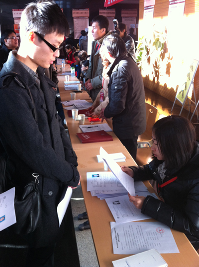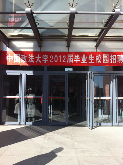 北京市岳成律师事务所于2011年11月30日应中国政法大学邀请参加中国政法大学2012届毕业生校园招聘活动,招聘会于2011年11月30日上午9点正式开始,政法大学的老师和学生会干部在简单的寒暄之后安排了招聘单位的座位,本次招聘会岳成律师事务所备受政法大学老师和学生重视,学生们积极投放简历与我所人力资源部人员进行沟通了解。同学们的热情咨询从上午九点一直持续到中午十二点。本次招聘活动非常成功 我所也备受政法大学领导和学生的关注,同时政法大学和我所双方都期待每年的招聘合作!