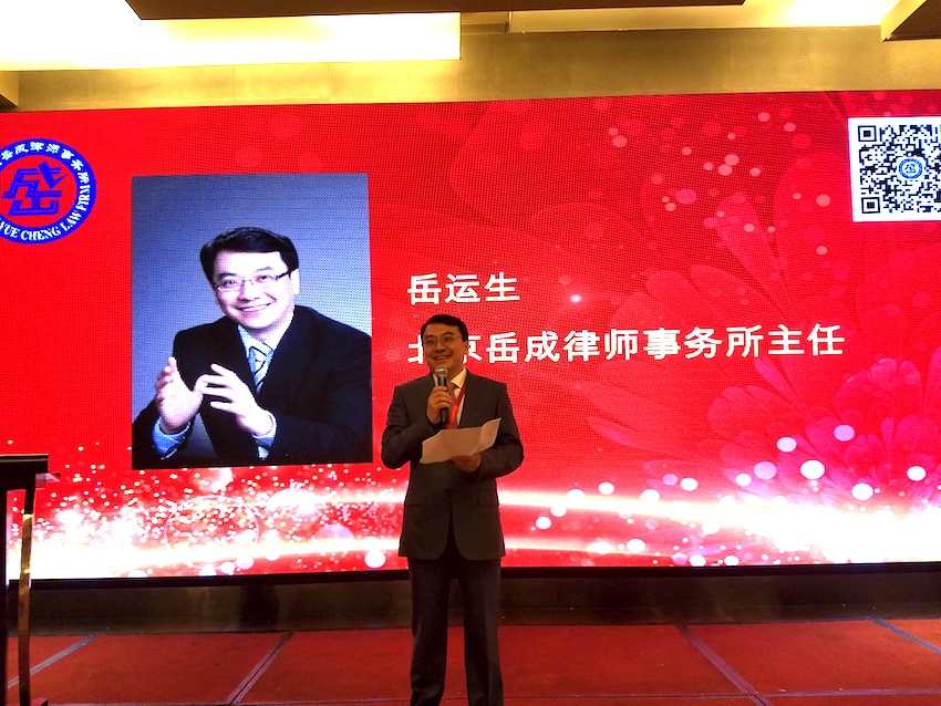 酒会由岳屾山律师主持,岳运生主任介绍桌长,首届全国十佳律师、北京岳成律师事务所创始人岳成律师致辞。