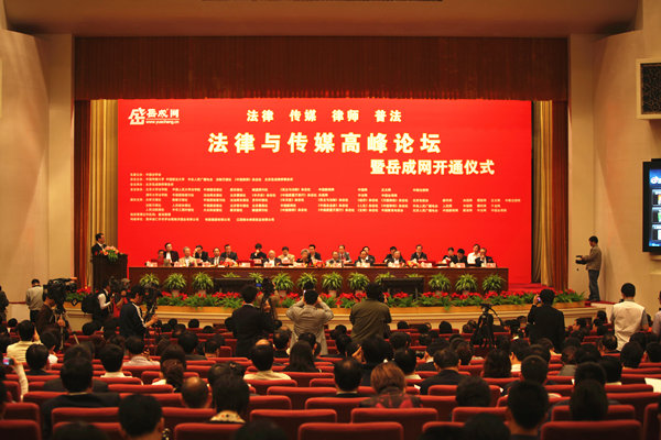 2011年5月8日,岳成律师事务所在人民大会堂举办法律与传媒高峰论坛暨岳成网开通仪式