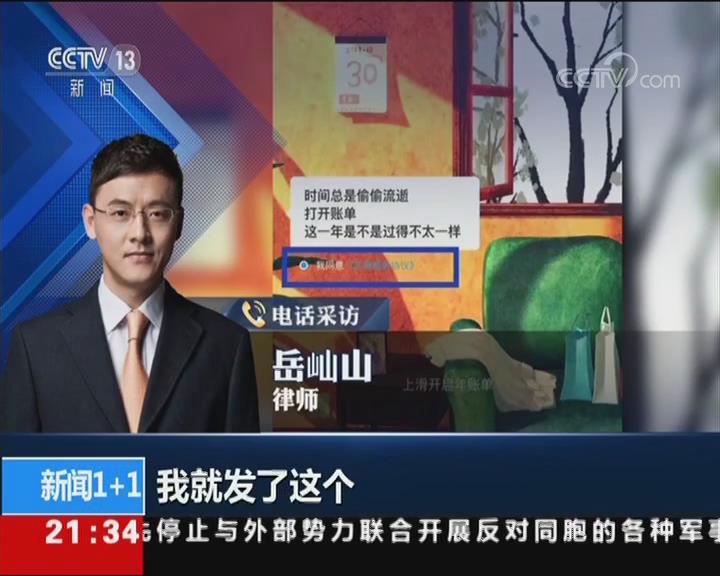 央视《新闻1+1》电话采访岳屾山律师就“支付宝年度账单”事件再谈个人隐私保护