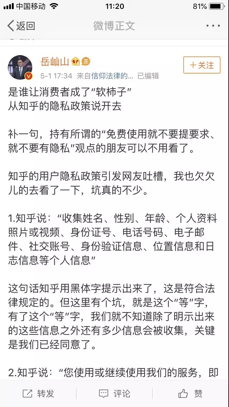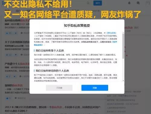 知乎收集的信息有些似乎并不符合必要性,比如位置信息,比如社交账号。另外知乎的等字亦不符合法律规定的需要明示收集的规定。