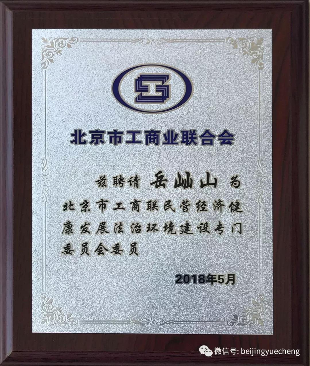 2018年5月,北京岳成律师事务所高级合伙人岳屾山律师受聘担任北京工商联民营经济健康发展法治环境建设专门委员会委员。