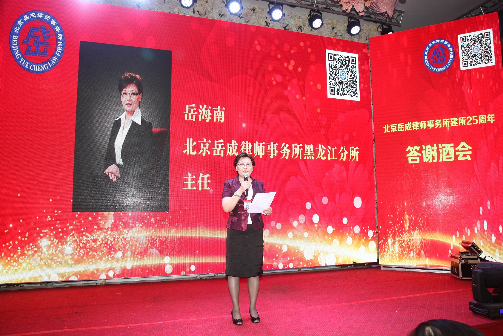 酒会由岳成所黑龙江分所武浩律师主持,黑龙江分所岳海南主任介绍桌长,首届全国十佳律师、北京岳成律师事务所创始人岳成律师致辞。