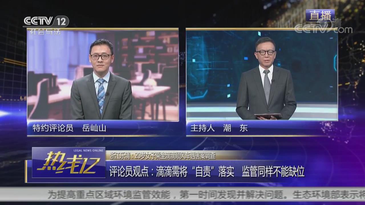 岳屾山律师作客央视《热线12》评浙江乐清20岁女子乘坐滴滴顺风车遇害案调查