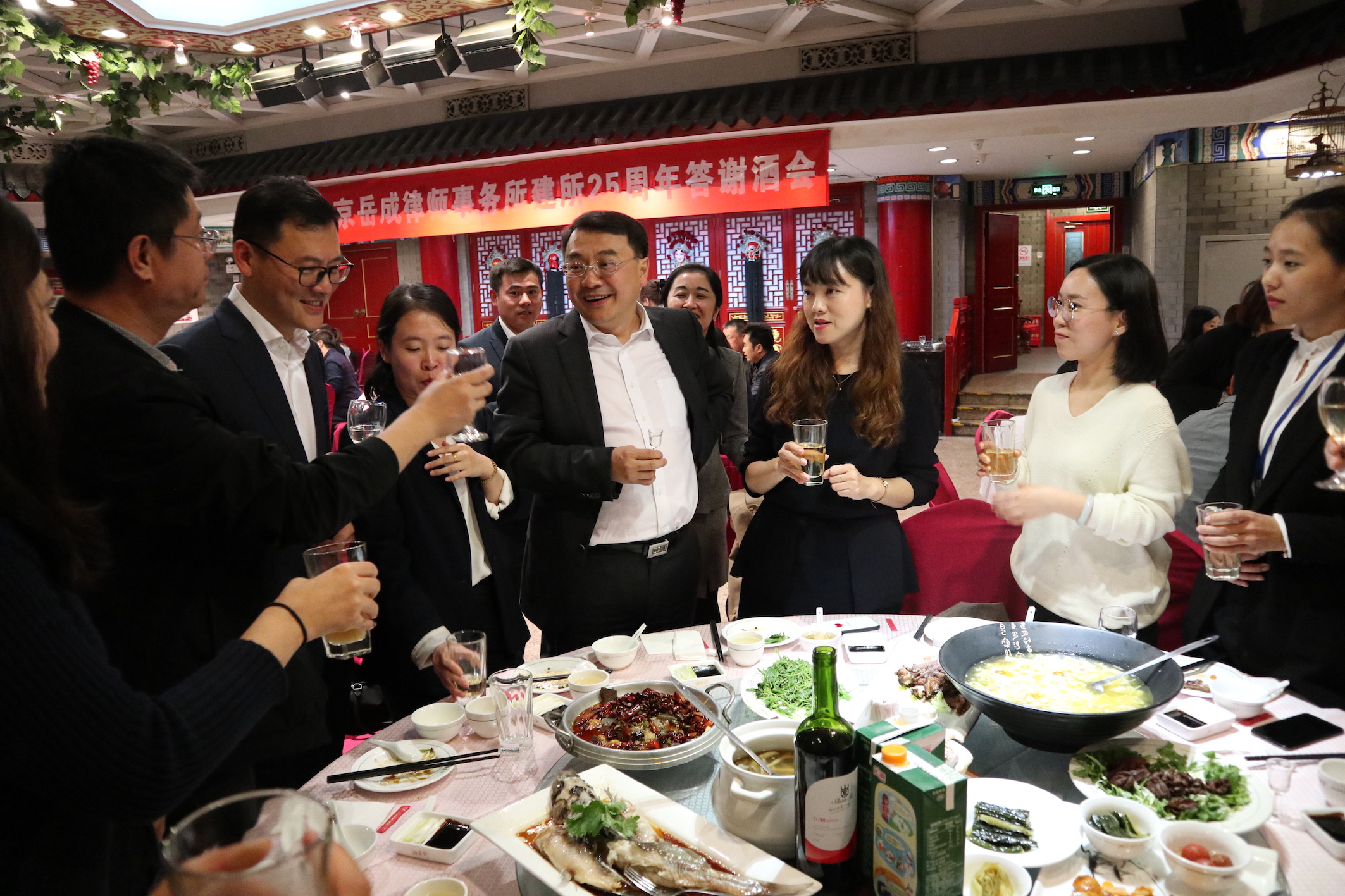 参加酒会的来宾参观了岳成所,并观看了岳成所建所25周年专题片《聚峰始为岳 忠信业竟成》。最后,大家一起到全聚德(三元桥店)共进晚宴。