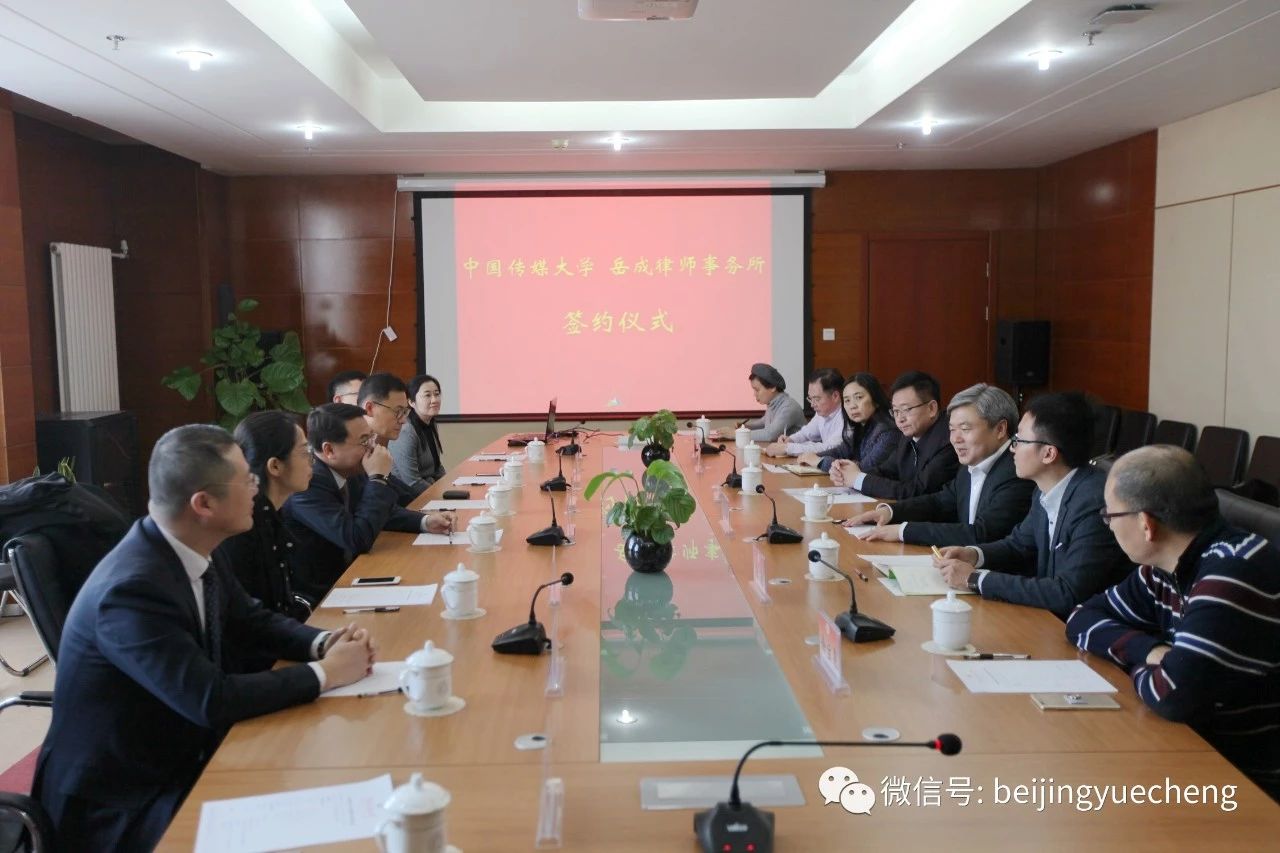 2018年12月26日,中国传媒大学聘请北京岳成律师事务所担任常年法律顾问,在中国传媒大学举行签约仪式。