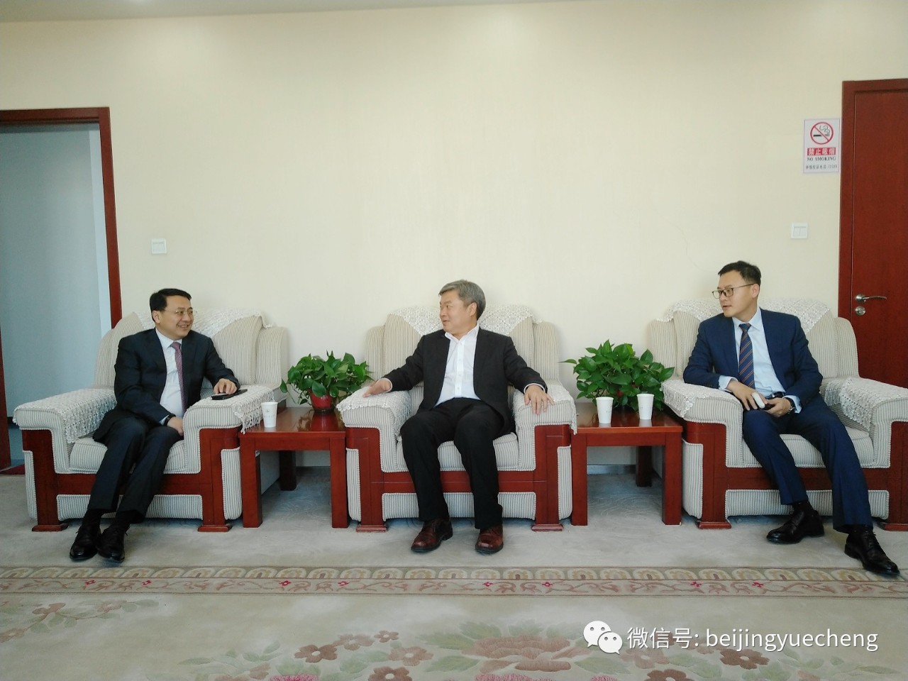 中国传媒大学校长廖祥忠(中)与岳运生主任(左)、岳屾山律师(右)亲切交流